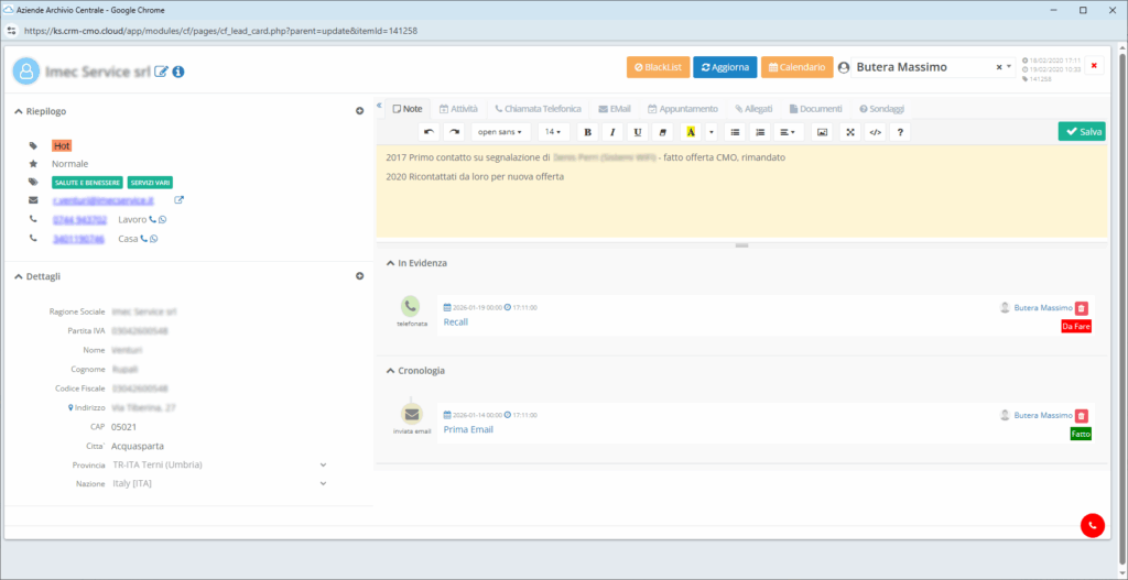 In questi casi, la scheda del Lead si apre automaticamente, permettendo all’operatore di avere immediatamente sotto controllo la storia del contatto. Questo approccio riduce i tempi morti e aumenta l’efficacia delle attività telefoniche, mantenendo la Pipeline sempre aggiornata e coerente con la realtà operativa.