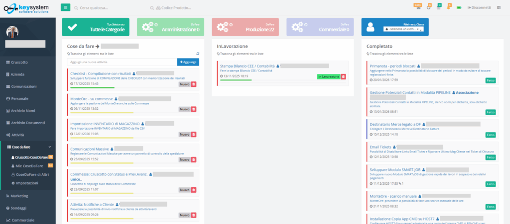 La Produttività Personale non consiste nel fare di più, ma nel fare meglio. Significa sapere cosa fare, quando farlo e con quali priorità. Il modulo COSE-DA-FARE di CMO+ nasce come un vero e proprio organizer personale, pensato per aiutare ogni professionista a mettere ordine tra le attività quotidiane senza appesantire il flusso di lavoro.