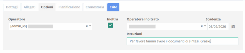 Ogni compito può essere inoltrato a un collega, indicando: